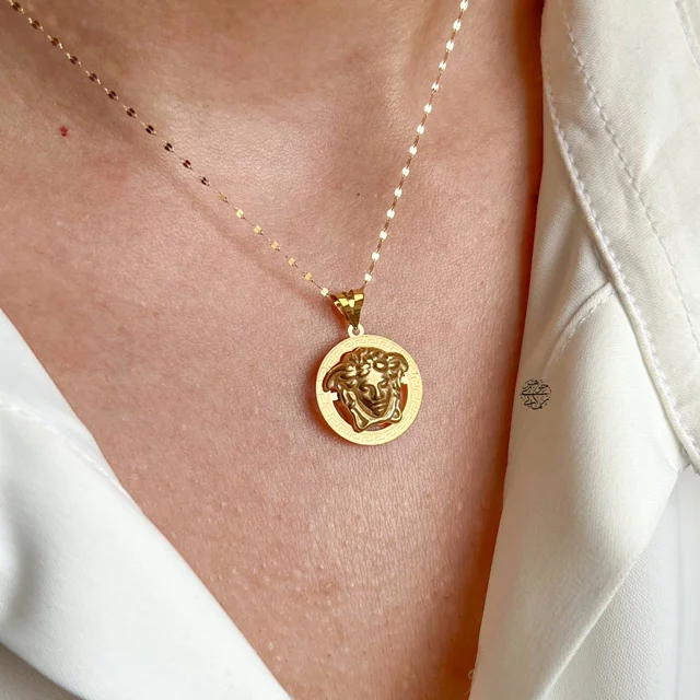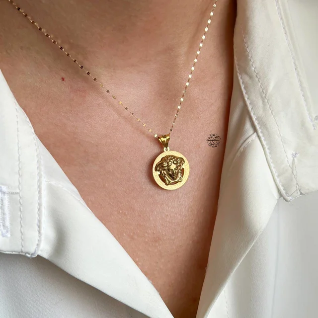 با پلاک ورساچه طلا، استایل خود را به اوج شیکپوشی برسانید! این جواهر با طراحی بینظیر و درخشش خیرهکننده، نمادی از لوکس بودن و سلیقهی بیهمتا است. مناسب برای هدیهای خاص و یا افزودن جلوهای جذاب به استایل روزمرهتان. همین حالا خرید کنید و درخشش واقعی را تجربه کنید!
