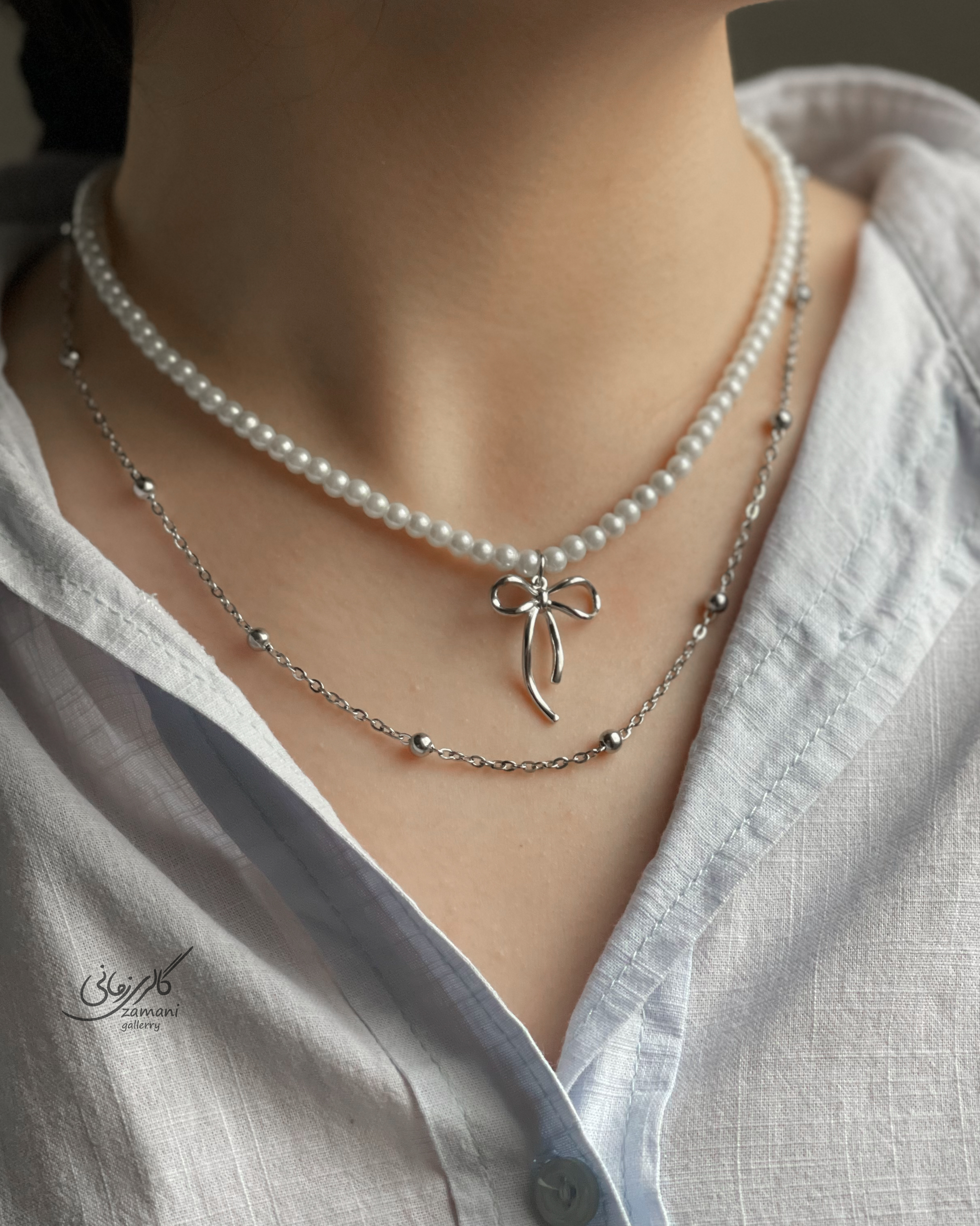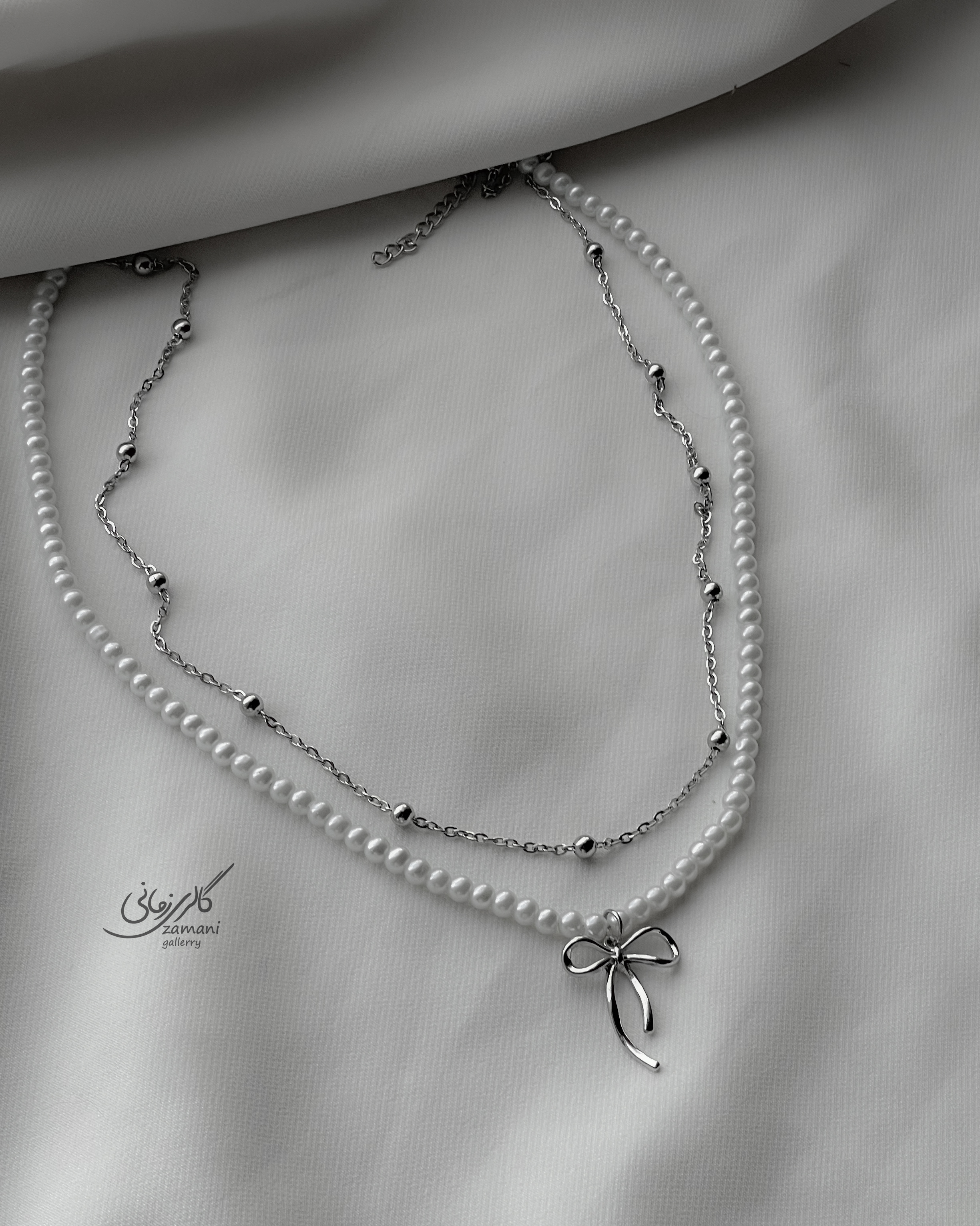 گردنبند دولاین مرواریدی پاپیون