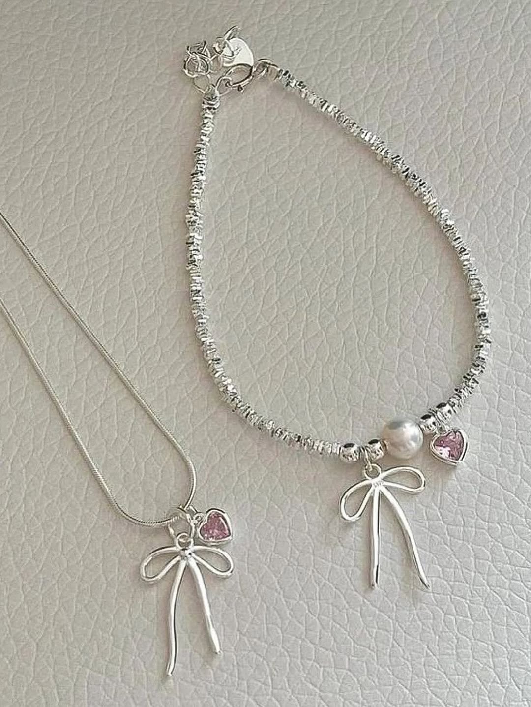 زیبایی و ظرافت را با ست گردنبند و دستبند پاپیون و قلب صورتی تجربه کنید! این مجموعه شگفتانگیز با طراحی منحصربهفرد و رنگ صورتی چشمنواز، هدیهای ایدهآل برای خودتان یا عزیزانتان است. بهسادگی استایل خود را متحول کنید و در هر مجلسی بدرخشید! این فرصت ویژه را از دست ندهید.