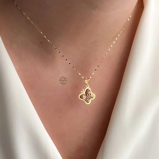 با پلاک پروانه نگینی طلا، زیبایی و ظرافت را به گردن خود بیاویزید. این جواهر خیرهکننده با نگینهای درخشان، جذابیت و شکوهی خاص به استایل شما میبخشد. مناسب برای هر مناسبتی، این پلاک برگرفته از طرح پروانه، نمادی از تحول و زیبایی است. هماکنون خریداری کنید و درخششی متفاوت را تجربه کنید!