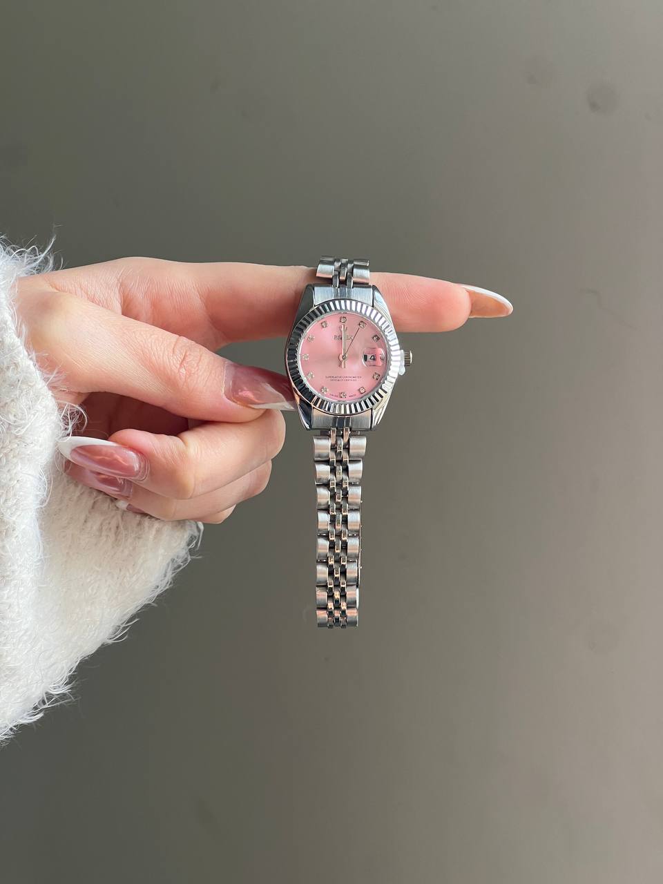 با ساعت رولکس سیلور و صفحه صورتی، به استایل خود جذابیتی بینظیر ببخشید! این ساعت لوکس با طراحی زیبا و کیفیت بیهمتا، نمادی از دقت و سلیقه است. فرصت را از دست ندهید و با این انتخاب شیک و مد روز، بهترین نسخه از خود را به نمایش بگذارید. زمان را با رولکس احساس کنید!