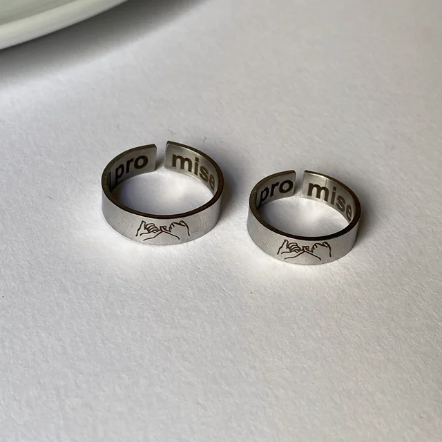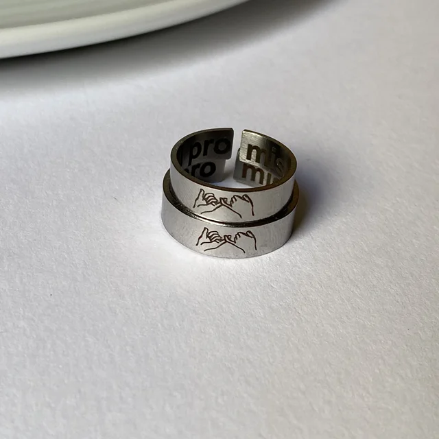 ست انگشتر قول یا I promise 😍فوق العاده جذابه از نظر کیفیت دوسال ضمانت داره پشت انگشتر بازه پس انگشتتون هر سایزی باشه میشه تنظیمش کرد🔥رنگش صد در صد ثابته جنسشم استیله ....قالب انگشترا سایز ۷.۸ ارسال به کل ایران داریم ... ضد حساسیته.....تکی فروخته نمیشه،،5روز زمان اماده سازی داره